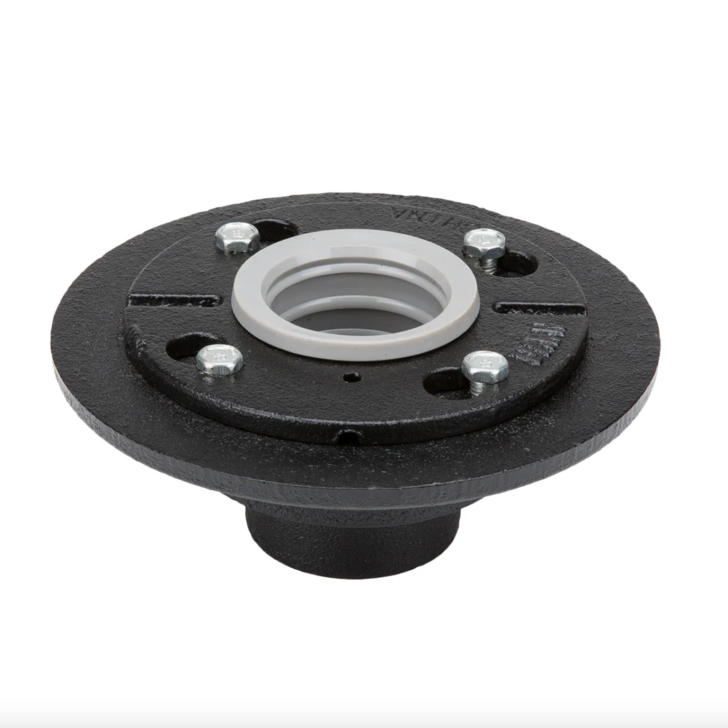 The Cast Iron Membrane Connector is compatible with all our shower drains. The Cast Iron Membrane Connector contains a rubber gasket.